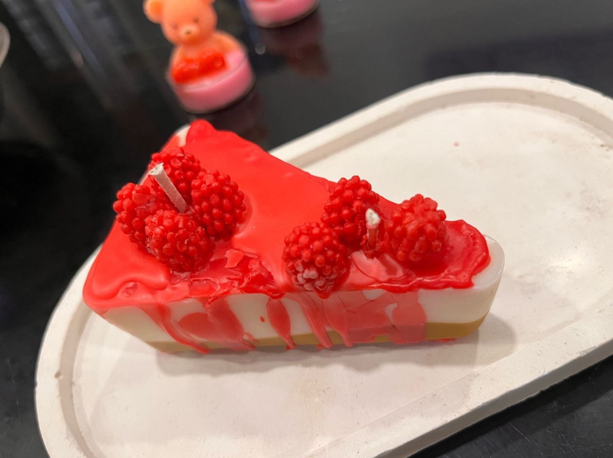 Indulge your senses with our handcrafted Strawberry Cheesecake Candle, designed to look just as tempting as a real dessert. With realistic berry toppings, a glossy strawberry drizzle, and creamy layered detailing, this candle adds the perfect touch of charm to your room décor.